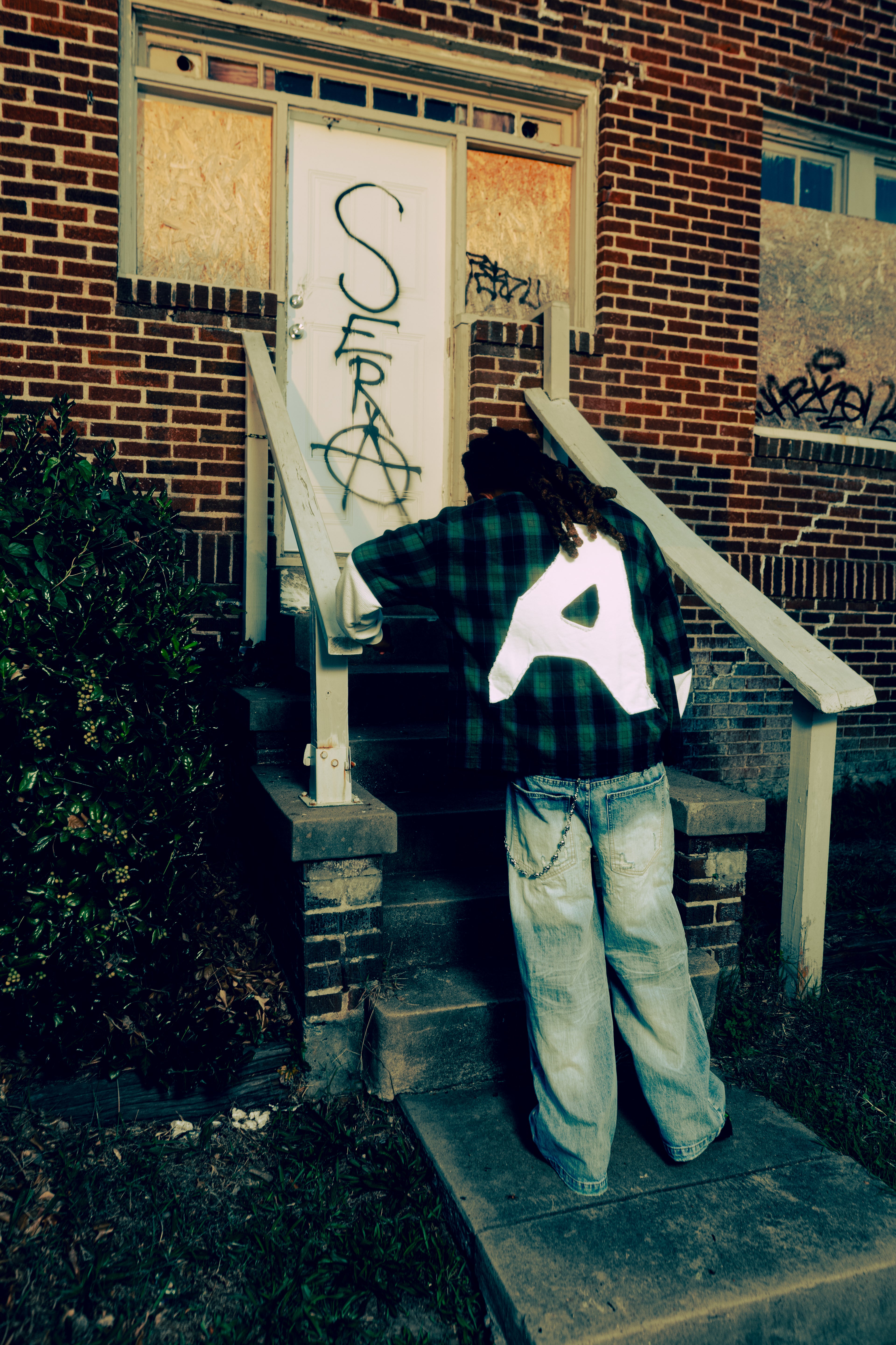 Distressed Appliqué Embroidery: Our signatured back 'A' logo.